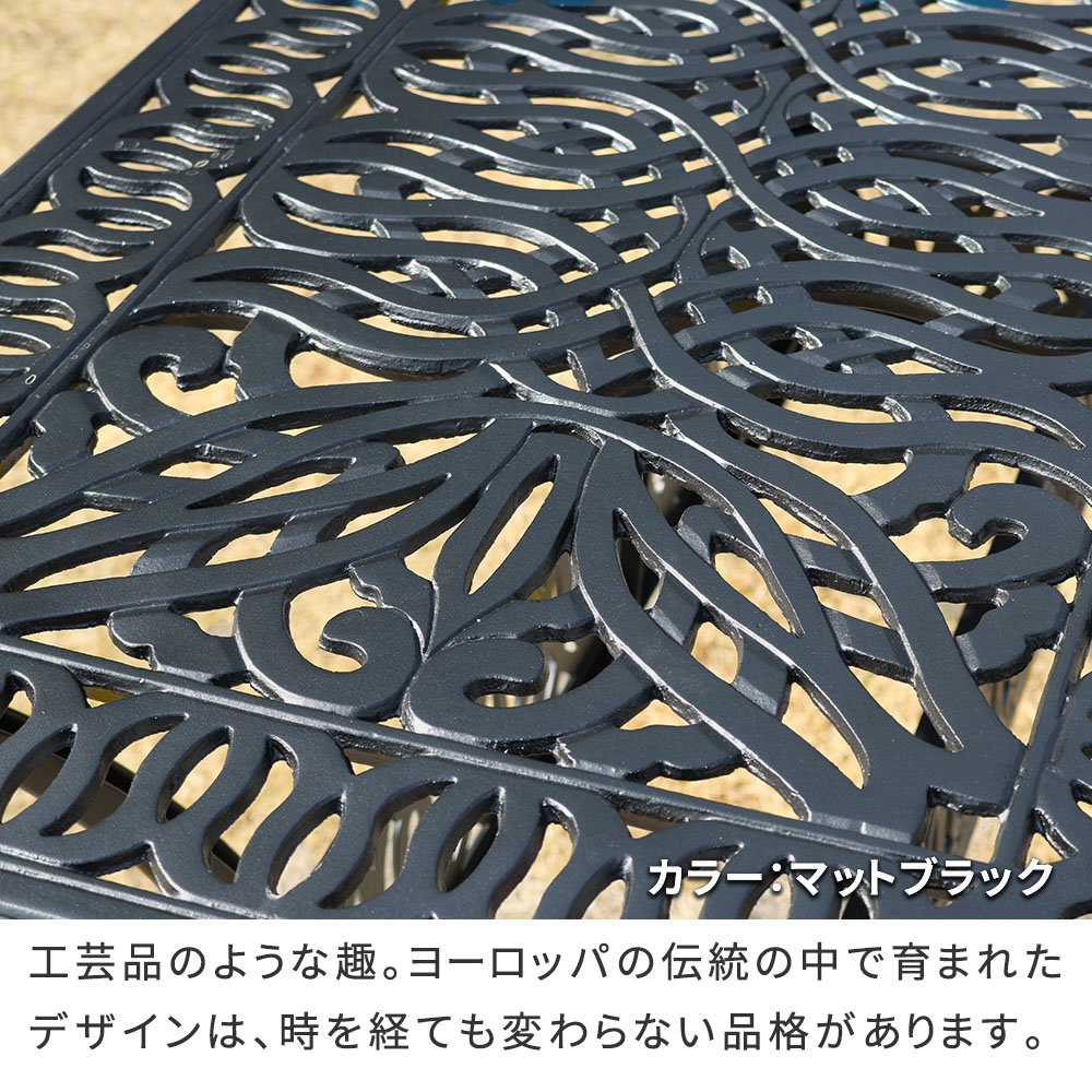 ガーデンテーブル おしゃれ クラシック トルペ 長方形 幅124 マットブラック 黒 ブラック レクタンテーブル テラス 庭 鋳物 アイアン アルミ 軽量 BKS-RG124