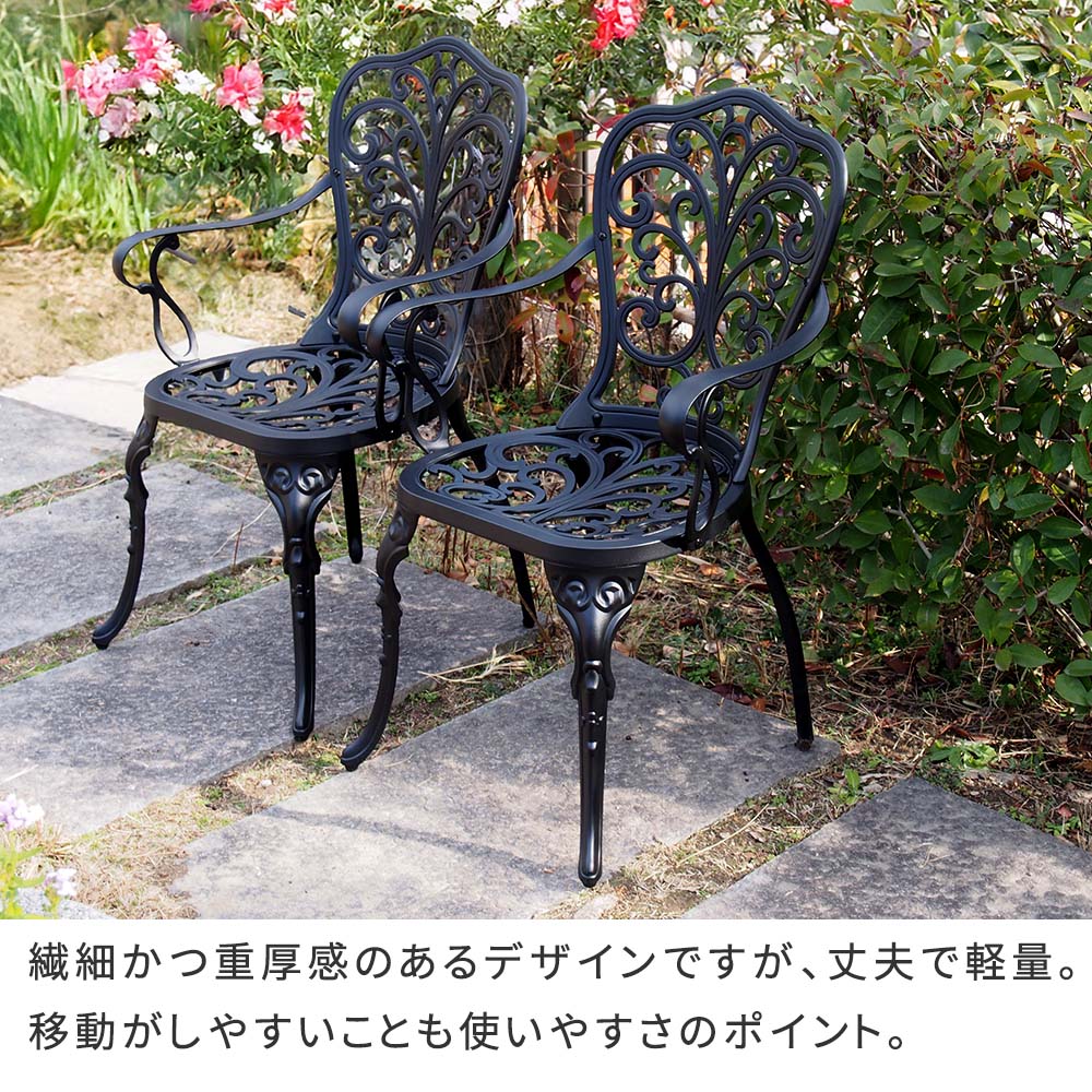 錆に強く、汚れたら拭くだけでお手入れ完了。屋外で日常使いしやすい素材です。丈夫&軽量で、移動がしやすいです。