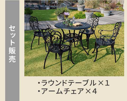 ◆イングリッシュガーデンにぴったりなクラシックな長方形テーブル&チェア4P 5点セット・「トルペ」NEW マットブラック◆