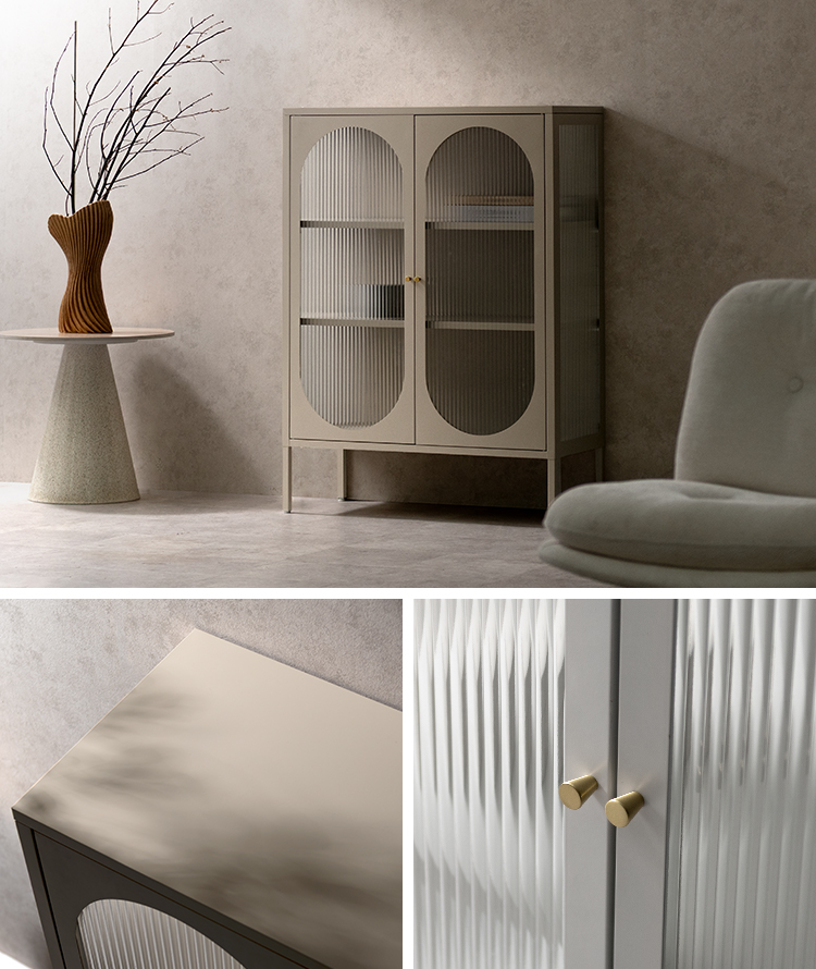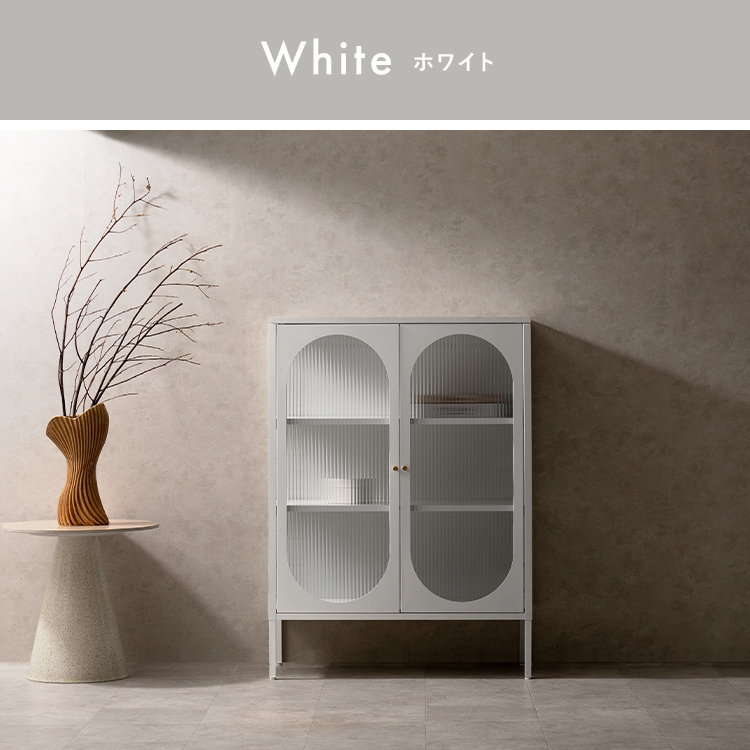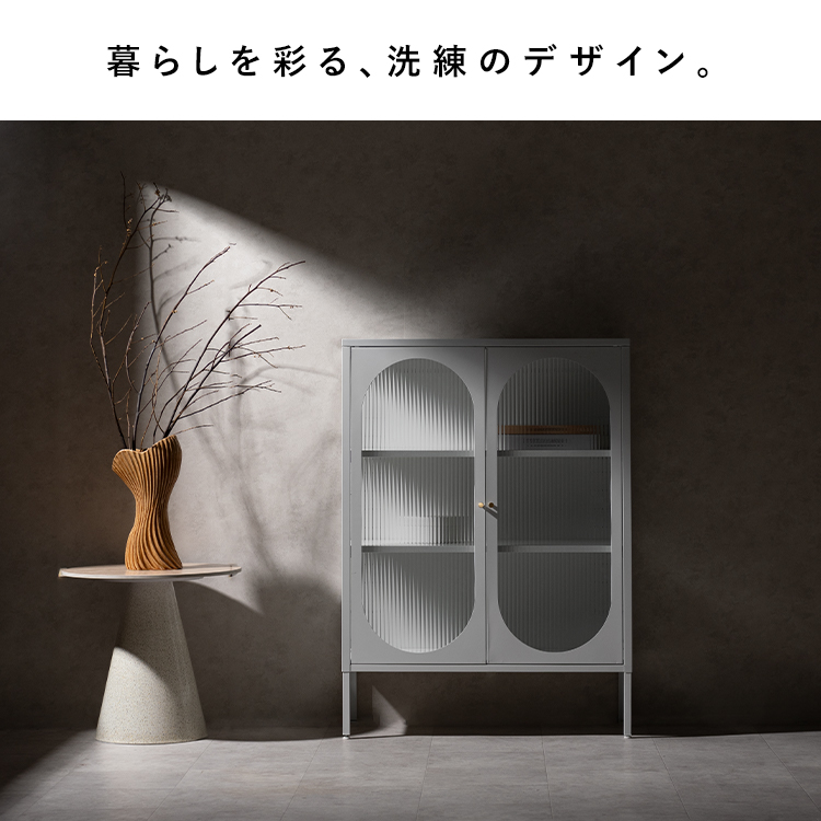 光を透過するガラス扉が飾る物を引き立て、軽やかな抜け感を演出します。