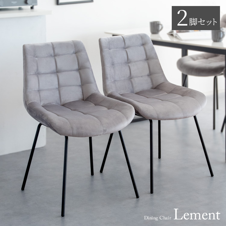 ダイニングチェア 2脚セット 2P おしゃれ 北欧 モダン 韓国系 Lement ラグジュアリー エレガント ホワイト グレー 4色 キルティング レザー ベルベット