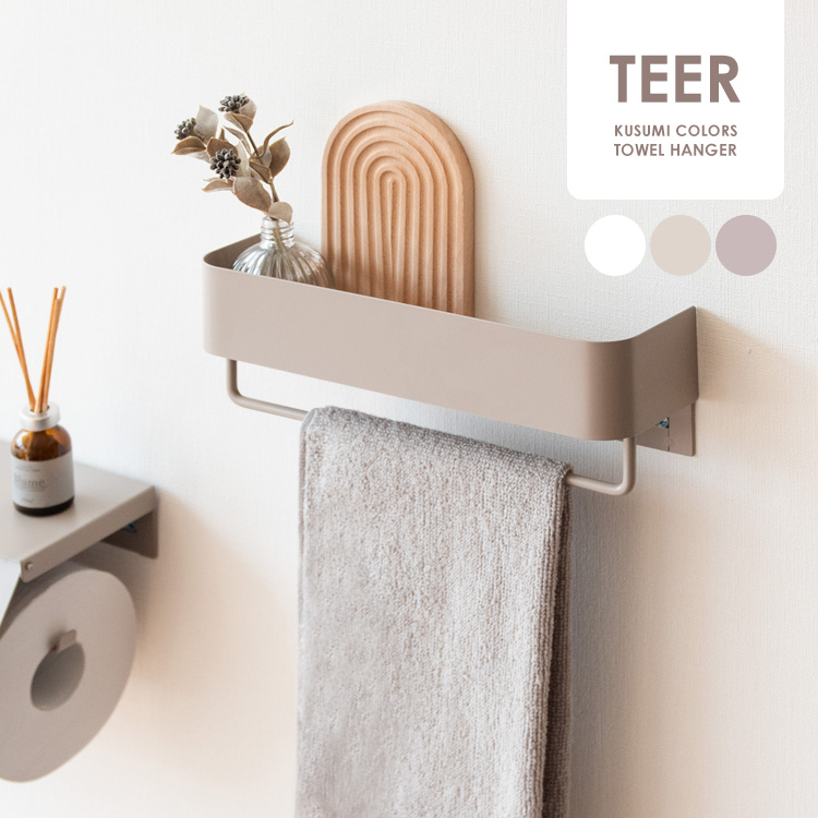 タオルハンガー ラック トイレ キッチン おしゃれ 北欧 韓国系 くすみカラー 3色 TEER ティール 幅25cm スチール 壁付け ピンク グレージュ ミルク 無地