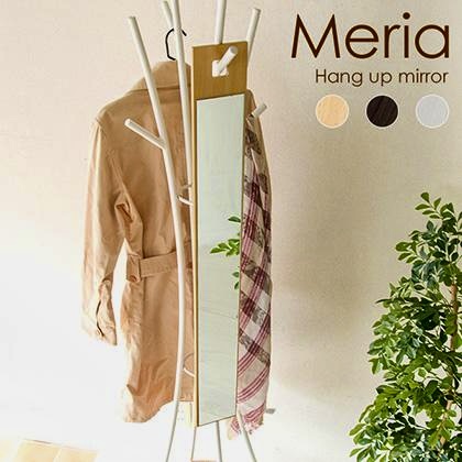 ミラー 姿見 スリム フック式 おしゃれ 北欧 木目柄 吊り下げ 鏡 縦長 全身 Meria 幅12.5 高さ102cm ナチュラル ブラウン ホワイト 薄型 引っ掛け フック穴