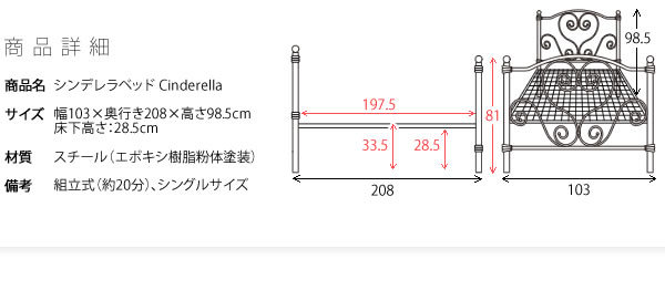 | 備考 | 組立式(約20分) シングルサイズ ※ベッドフレームのみの販売です。 |