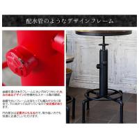 バーテーブル 昇降 円型 おしゃれ ビンテージ レトロ 幅60 天然木天板 アイアン脚 ビンテージ加工 配水管 デザイン INDUSTRIAL ブラック  レッド 高さ83〜100