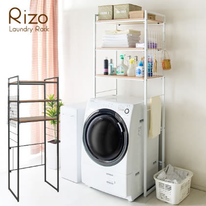 洗濯機周りに洗剤や洗濯バサミなど小物の収納にお困りの方にオススメのランドリーラック『Rizo(リソ)』。洗濯機上の空いたスペースを有効活用してスッキリ収納♪
