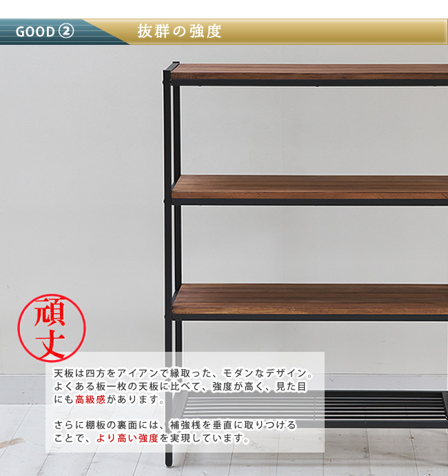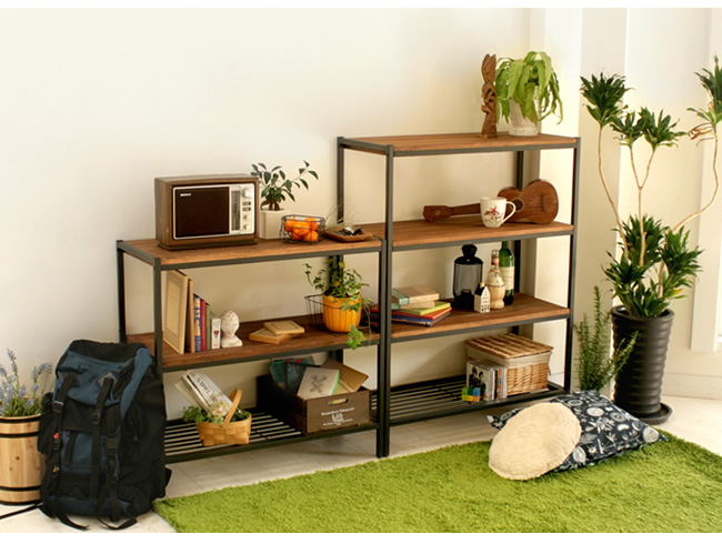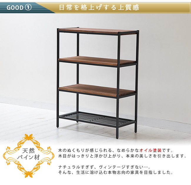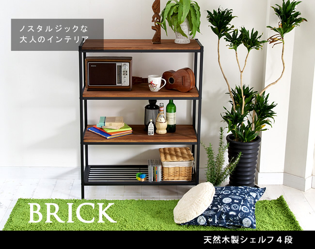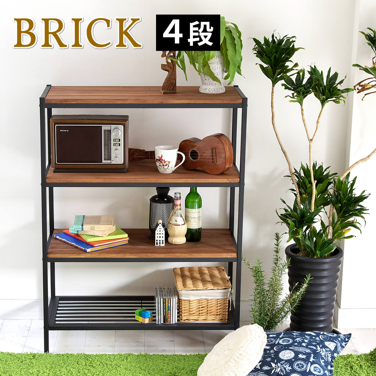 オープンラック 棚 シェルフ 4段 おしゃれ ビンテージ 天然木 86×38×114.5 BRICK ブリック PR-860-4BRN ブラウン×ブラック 本棚 ブラックスチール脚
