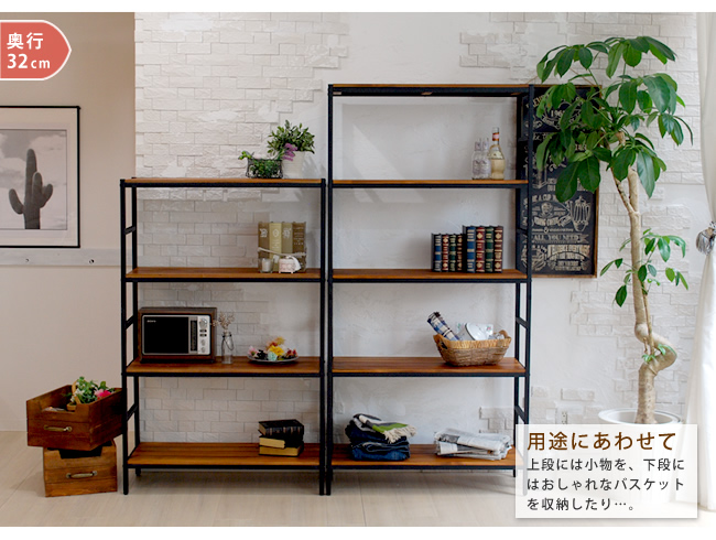 アイアン 木製 オープンラック スリム 5段 可動棚 おしゃれ ビンテージ 幅60 本棚 可動棚 天然木 アイアン BRICKシリーズ5段 60×32×175 PRU-6032175