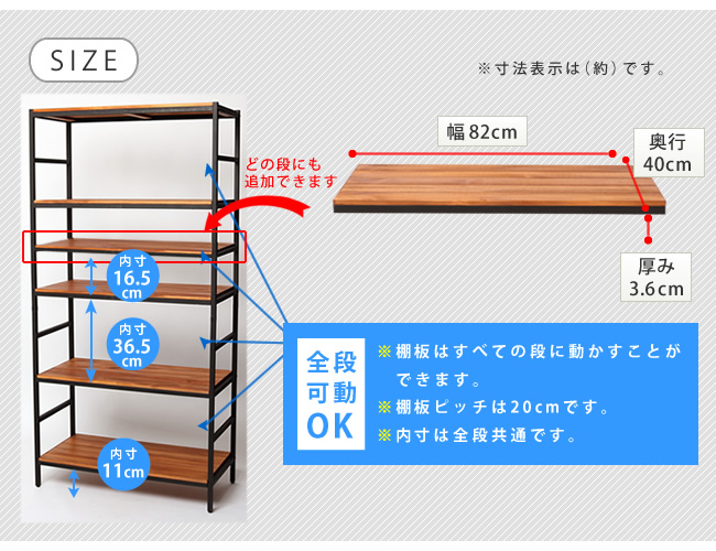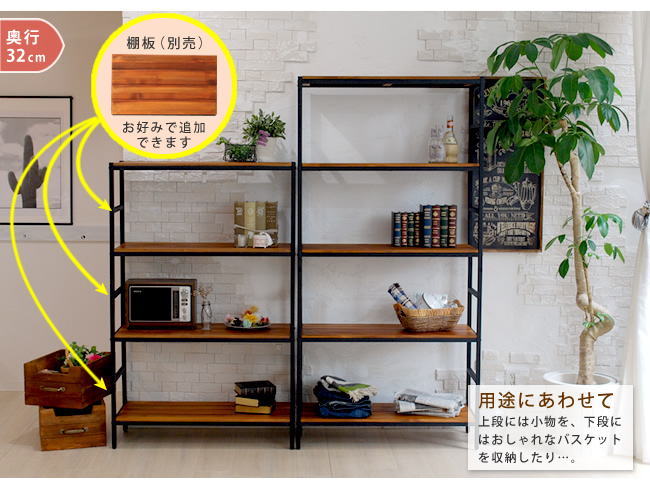 計8種類(4段と5段、二種類の幅と奥行き)をご用意。必ずお部屋にぴったりのラックが見つかります!