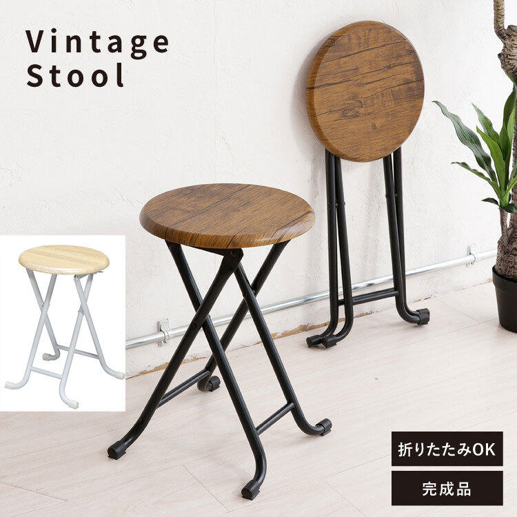チェア スツール 1P おしゃれ 北欧 ビンテージ キッチン ダイニング 折りたたみ 折り畳み 1P ブラウン ナチュラル キッチン スリム 座面高45 木製座面 木目柄