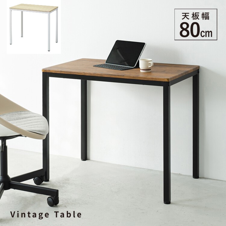 机 デスク テーブル 平机 幅80cm コンパクト おしゃれ 北欧 ビンテージ シンプル 木目柄 天板 アイアン ブラック ホワイト 脚 80×50 ブラウン ナチュラル 2色