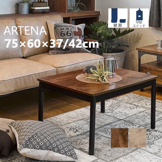 こたつ こたつテーブル 継脚式 ハイタイプ 一人用 おしゃれ ビンテージ 北欧 長方形 75 高さ調節 37 42 ブラウン ナチュラル センターテーブル ヒーター1年保証