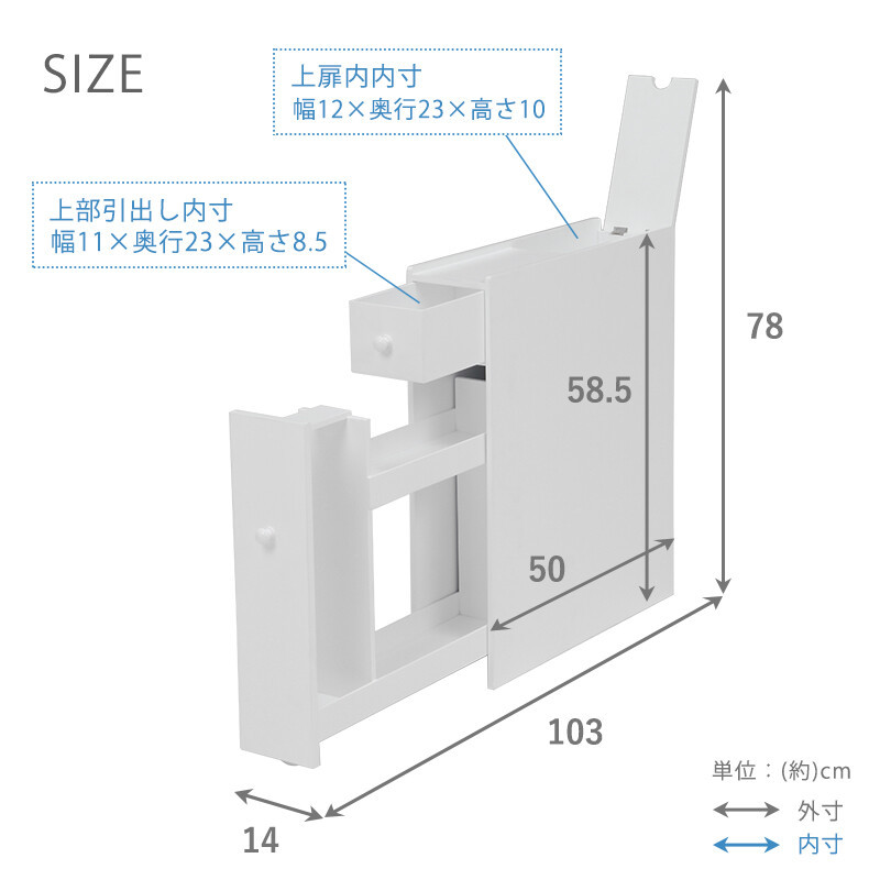 | サイズ | (約)幅14×奥行50×高さ58.5cm 引出内寸:約幅11×奥行23×深さ8.5cm |