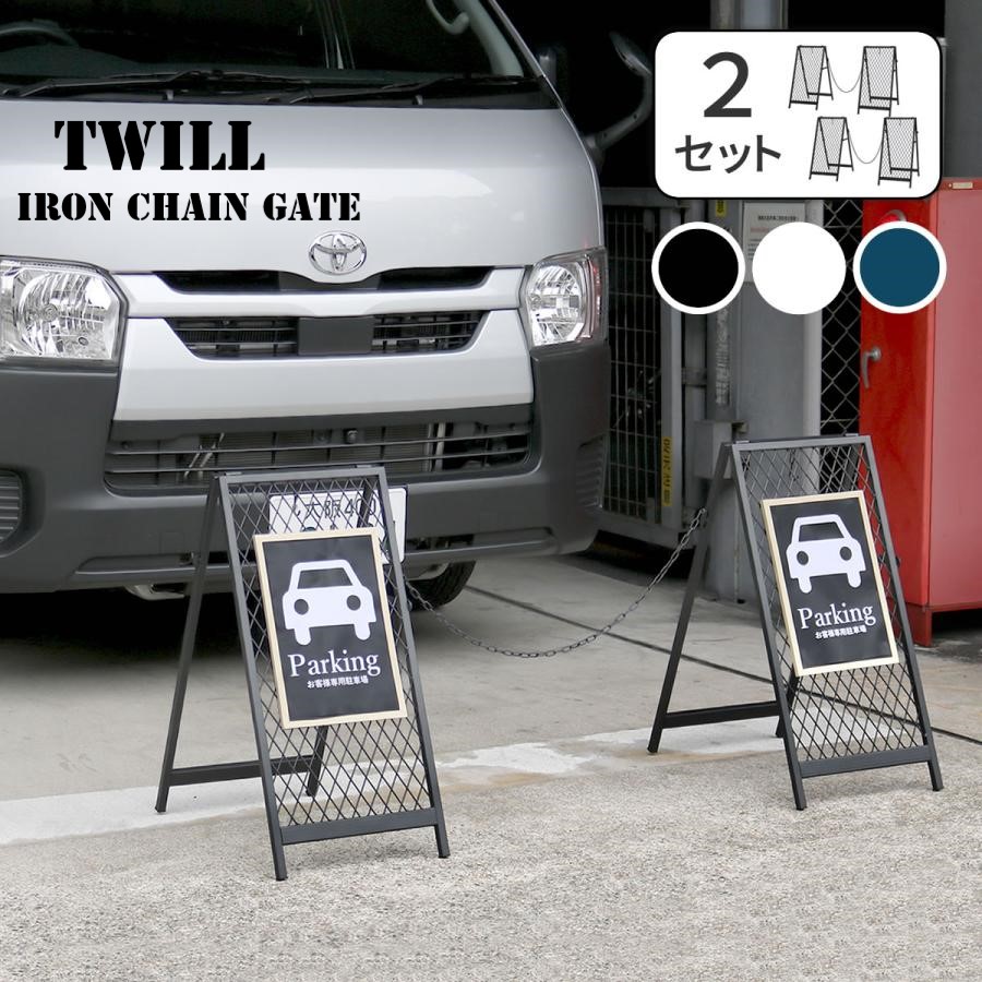 チェーンゲート スタンド式 2セット おしゃれ アメリカン ビンテージ 屋外 駐車場 立ち入り禁止看板 衝立て TWILL ツイル ブラック ブルーグレー ホワイト