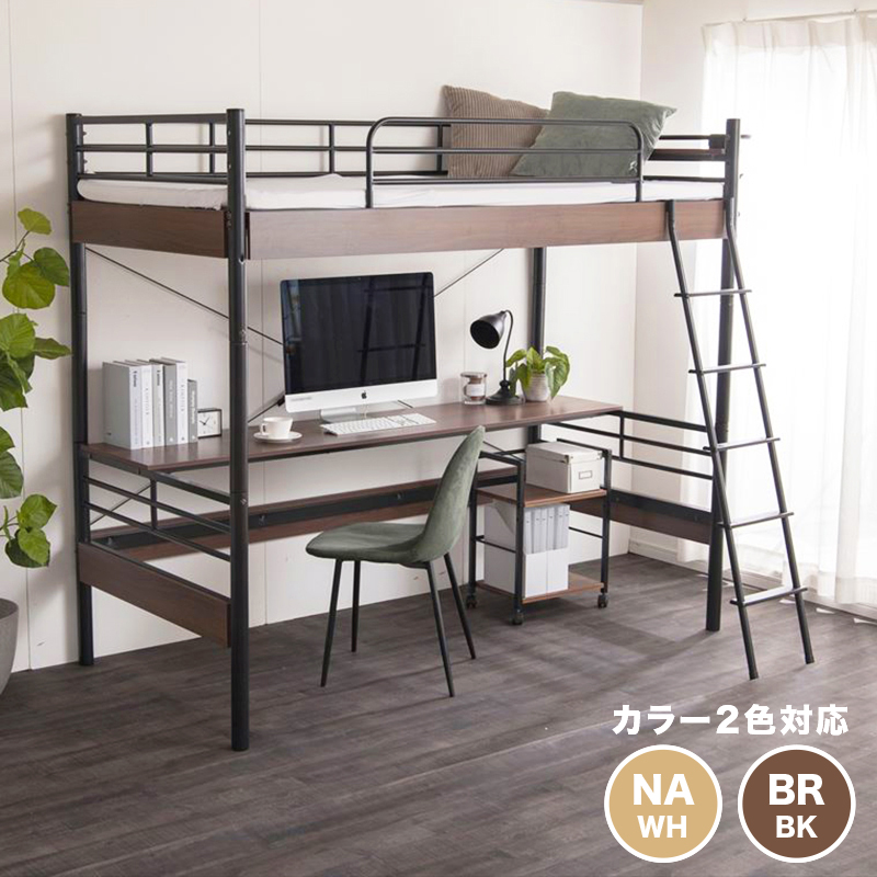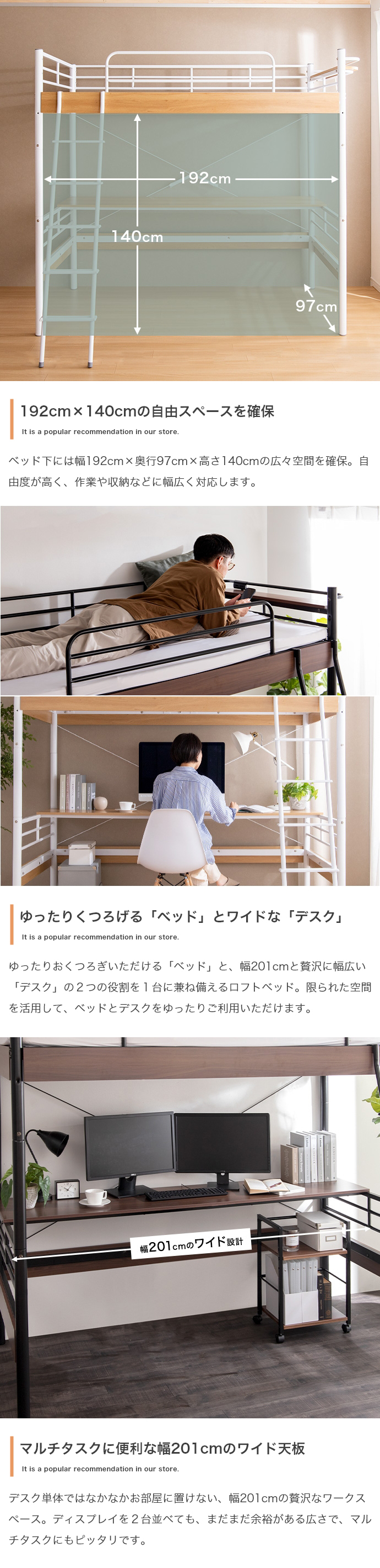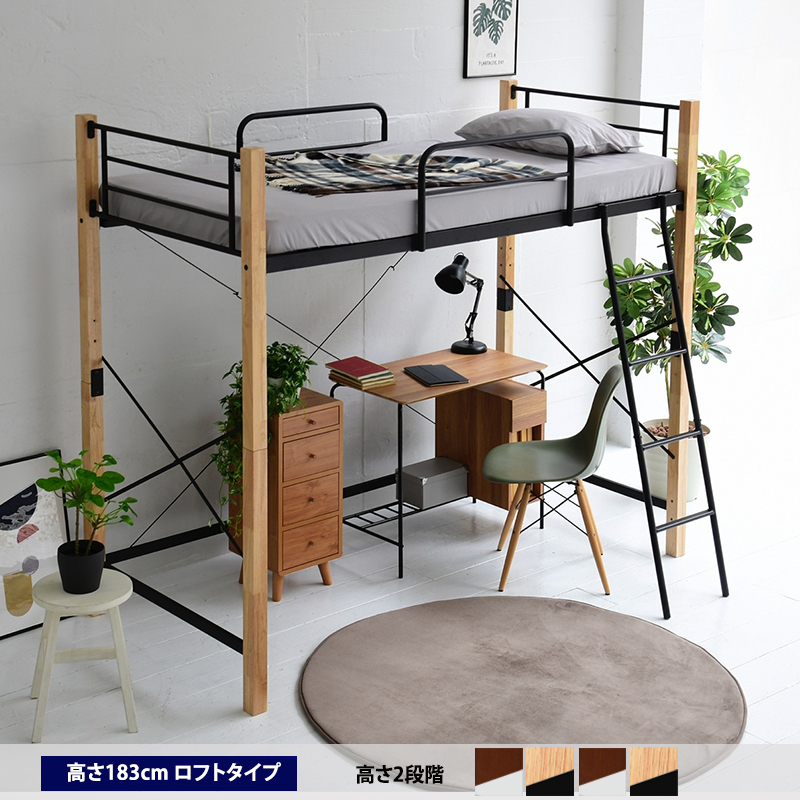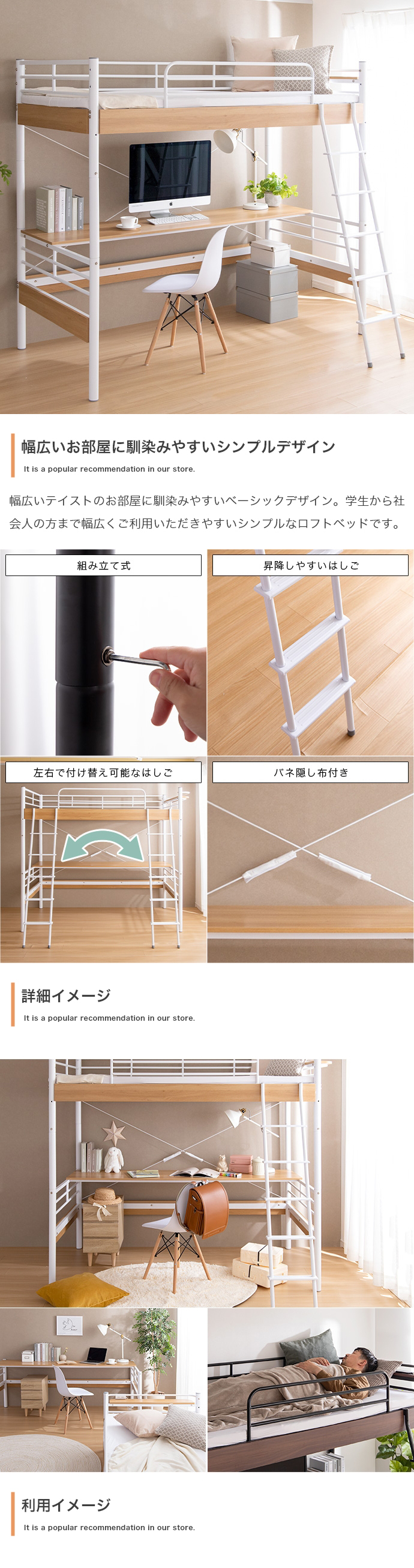 限られた空間で広々としたデスクとベッドを確保するロフトベッド、ワンルームや個人のお部屋などのスペースに余裕が無いお部屋にピッタリです。