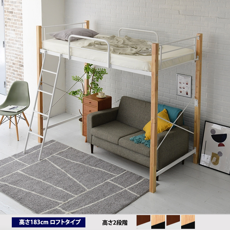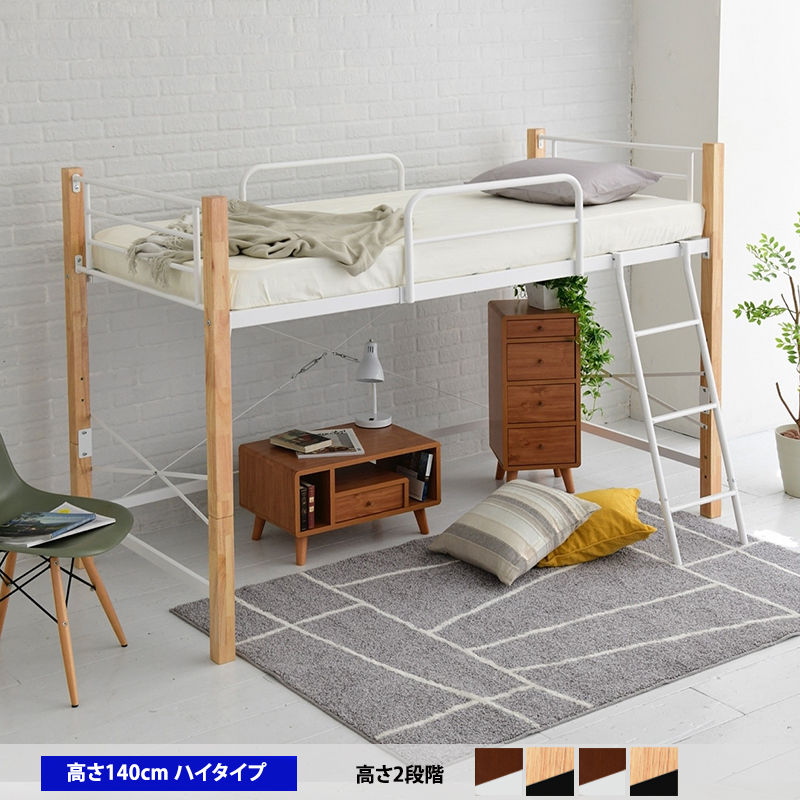 パイプベッド ロフト ハイベッド ハイベッド 木製 アイアン おしゃれ 組み立て 大人 子供 子ども 子供部屋 こども キッズ 中学生 こども用 高い 高さ調整 調節可能 鉄 梯子 低め 低い 揺れ防止 落下防止 ガード ブラウン パイプ 通気性 新生活 民泊 社宅