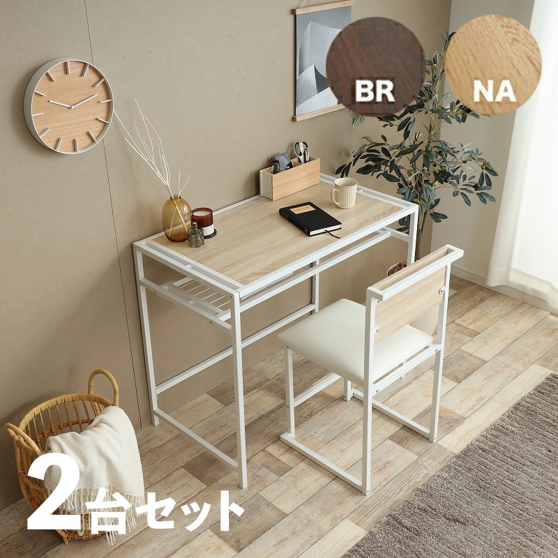 デスク チェアー 2台セット ホワイト×ナチュラル 幅90cm 棚付 リビング学習デスク 机 北欧スタイル テレワーク スリム WEE-DK