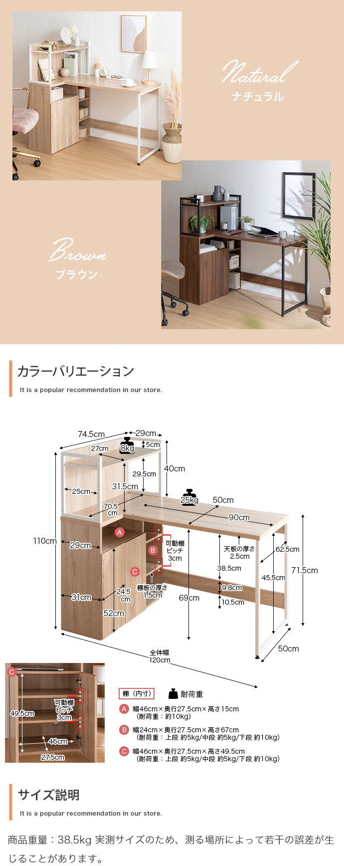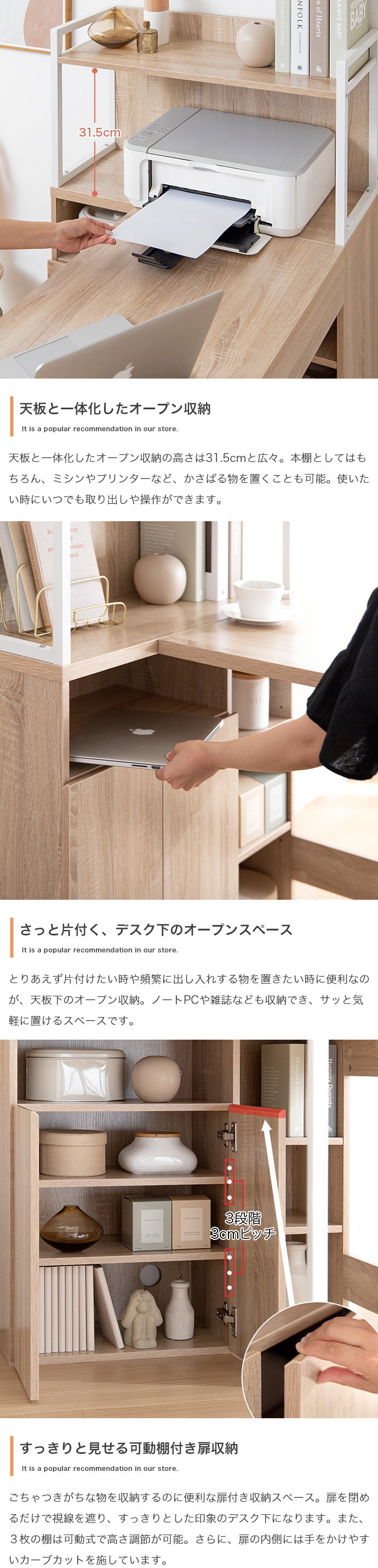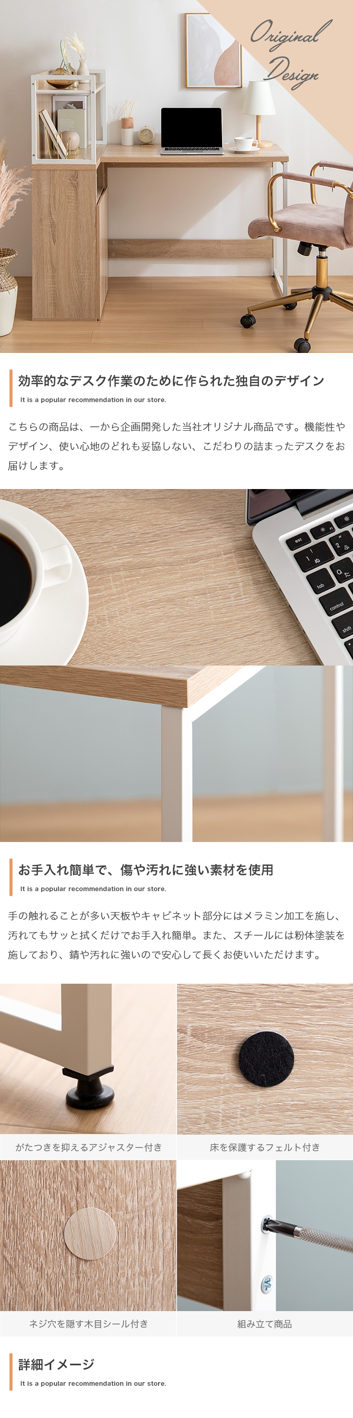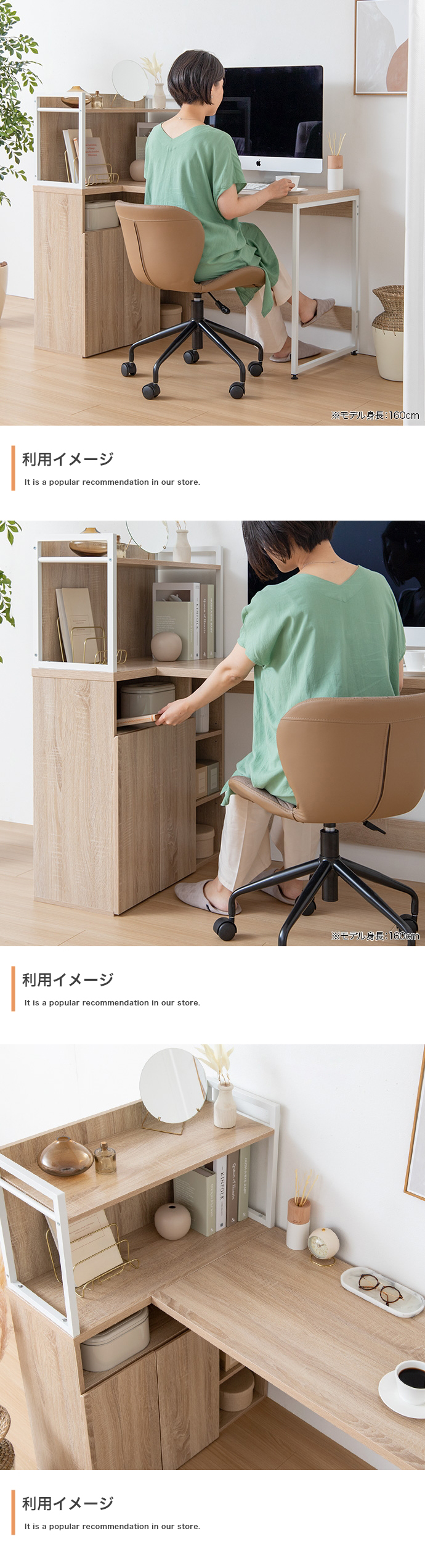大容量収納でデスク周りがすっきり片付く、収納とデスク一体型のL字収納・棚付きデスク