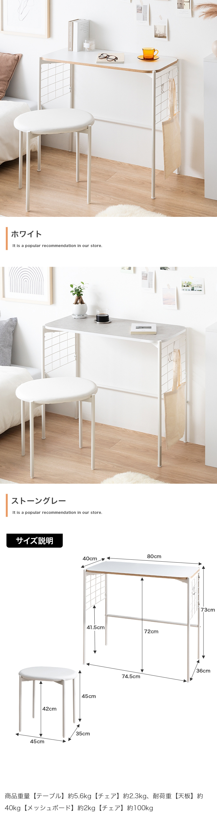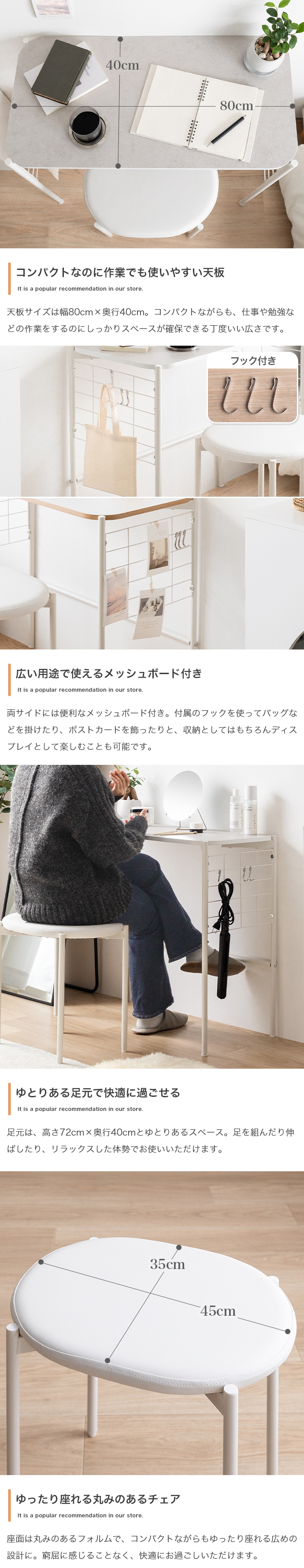 デスク デスク+チェアセット ドレッサー SOI 80cm幅 棚付き 組み立て品 モニター台 ラック 机 PCデスク 学習デスク 勉強机 リビング学習デスク スリム
