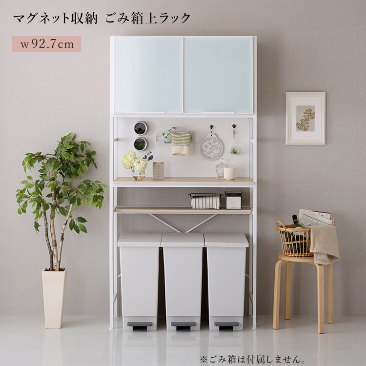 レンジ台 ごみ箱上ラック 幅93cm マグネット収納 ホワイトガラス 木目調 食器棚 キッチンラック レンジ台 FAS シンプルナチュラル