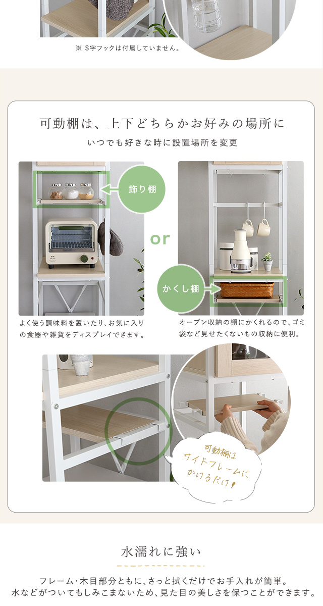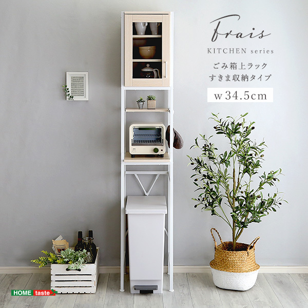 ゴミ箱上ラック 超スリム幅34cm すきま収納タイプ レンジラック キッチン収納 ナチュラルフレンチ フレンチカントリー シンプル