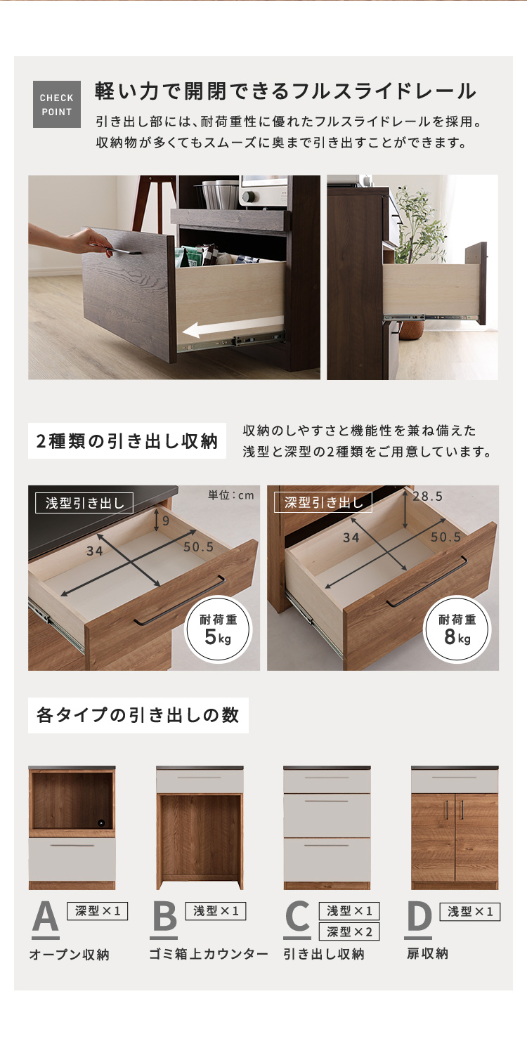 シリーズで組み合わせられるのでキッチンに合わせて収納を増やせます。