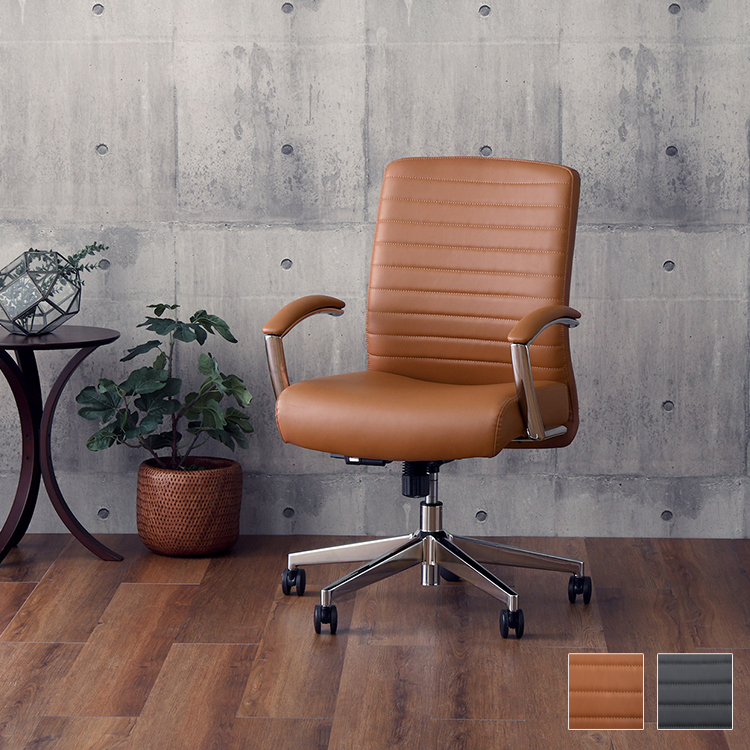 ■ビンテージな雰囲気あふれるオフィスチェア。背もたれに施された横ステッチが特徴的。