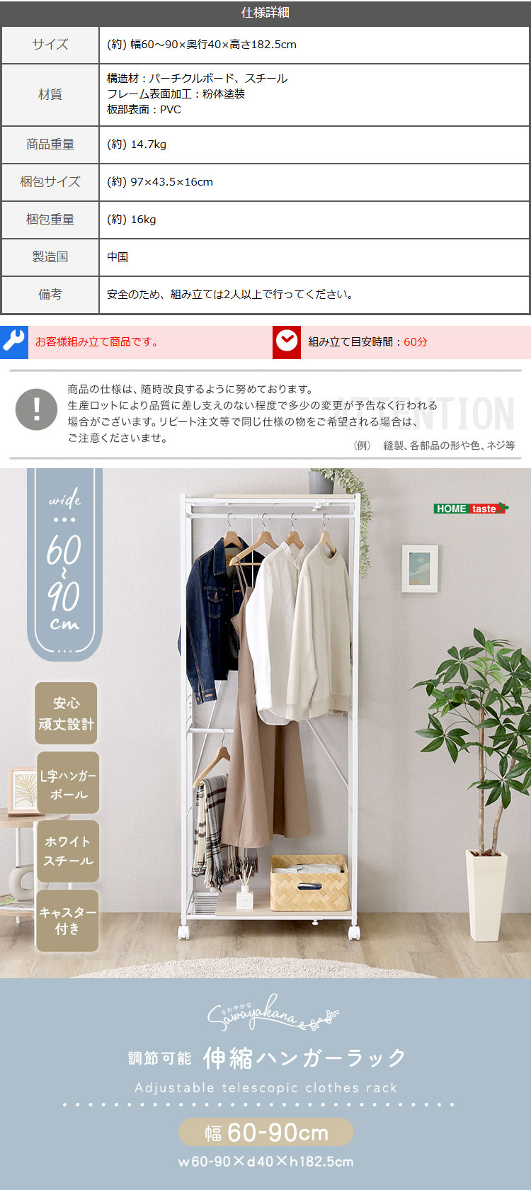 (約)幅60~90×奥行40×高さ182.5cm