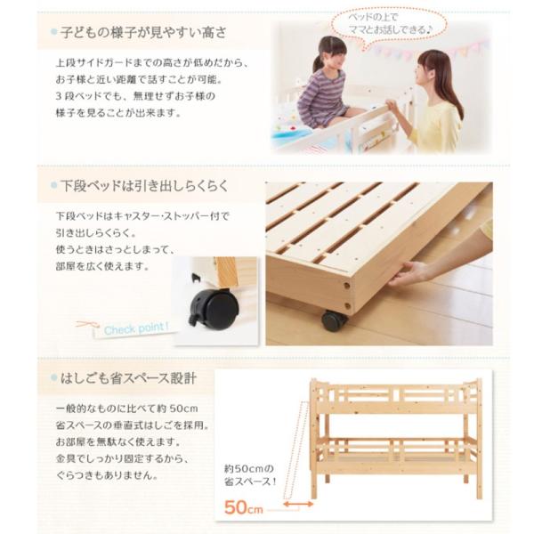 FRC 3段ベッド フレームのみ フィンランドパイン天然木 分離式 3段ベッド シングルベッド ナチュラル/ホワイト 棚 60/82cm セット可