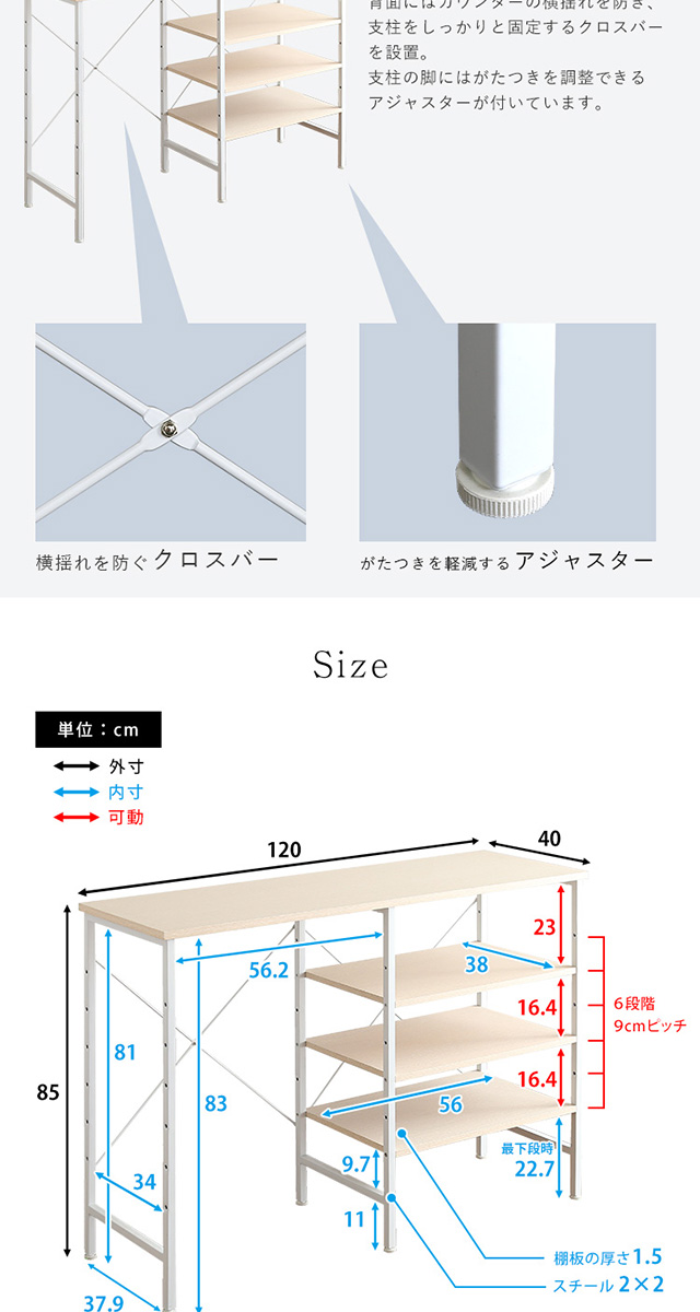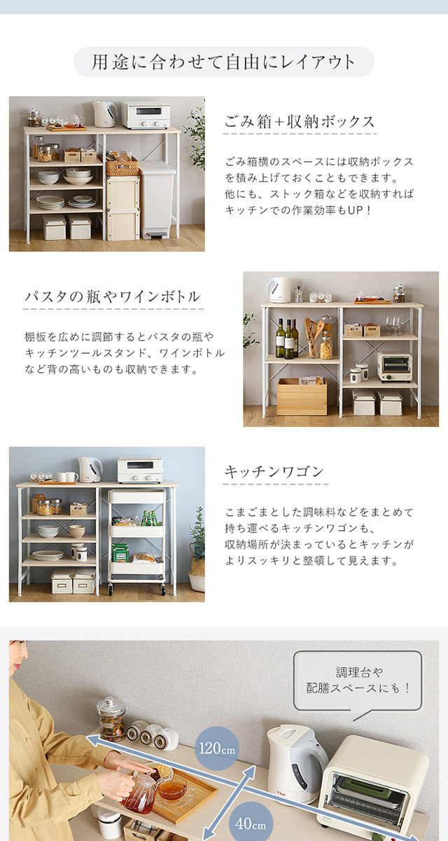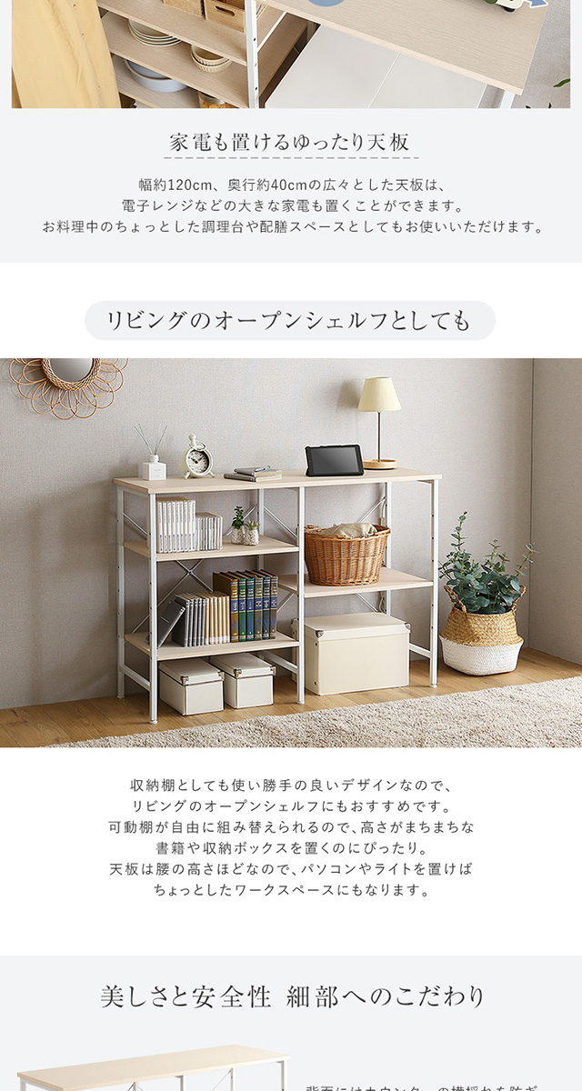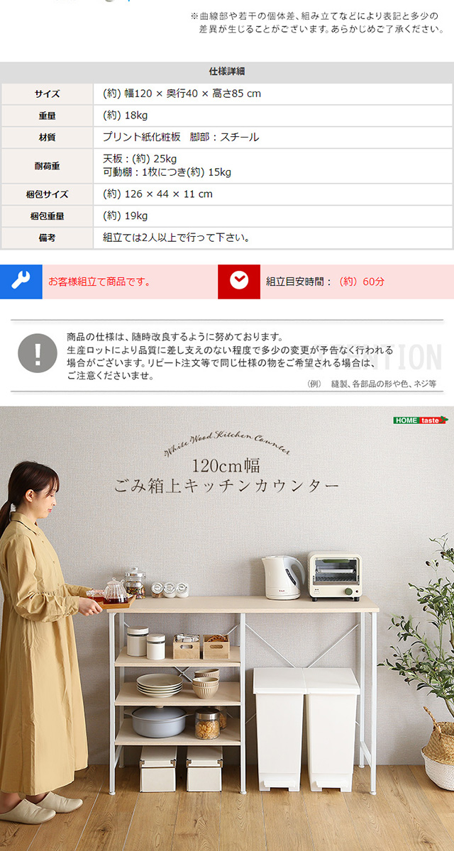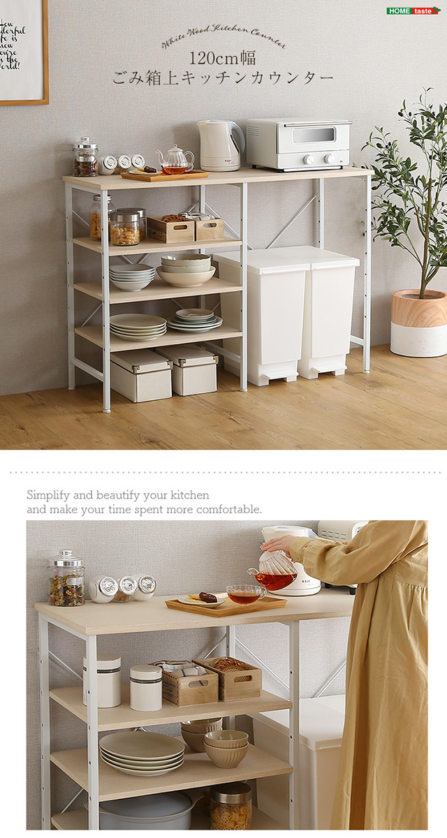 ごみ箱上キッチンカウンター120cm幅 シンプル