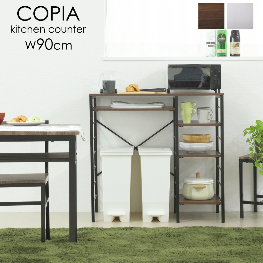 キッチンカウンター ゴミ箱上ラック キッチンラック 食器棚 幅90 奥行40 高さ85 レンジ台 間仕切り 棚 スリム ラック 作業台 食器 家電 収納 天板 ホワイト