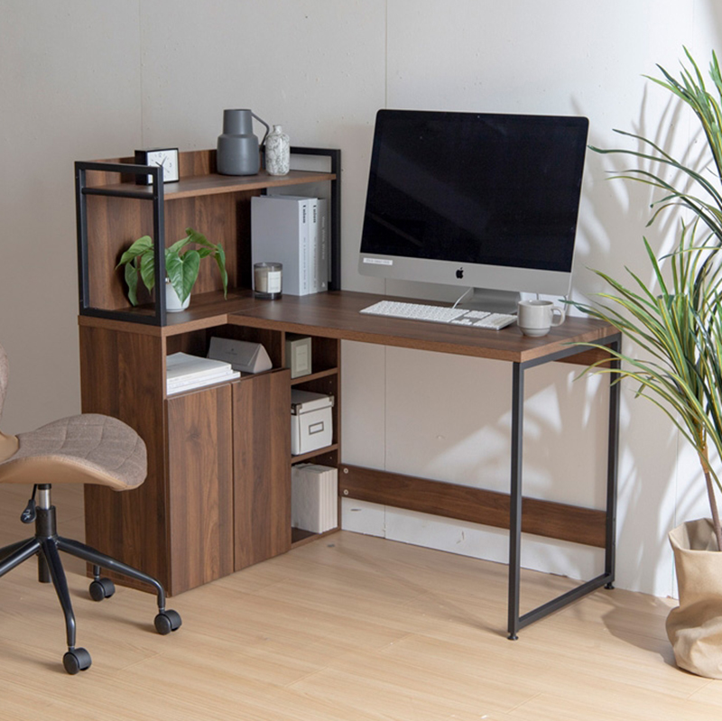 在宅ワーク・学習に最適。広々使える棚付きL字デスク(幅115cm)