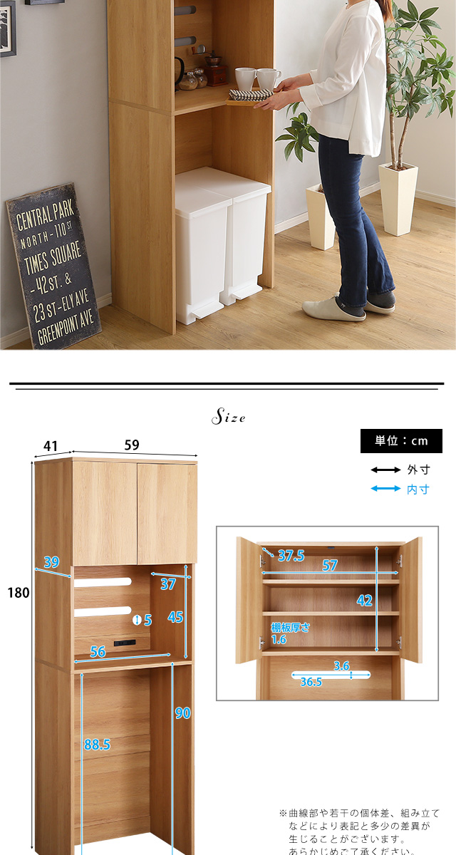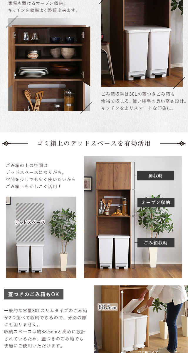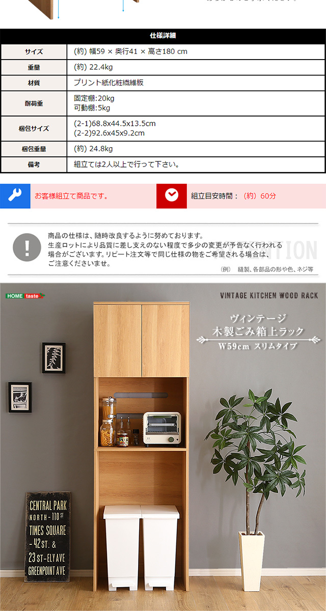 ヴィンテージ調木製ごみ箱上ラック スリムタイプ シンプル
