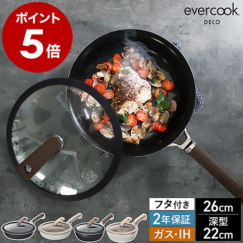 特典付[ evercook DECO ガラスふたセット フライパン 26cm / マルチパン 22cm ]IH対応 ガス火対応 フライパン 2年保証 エバークックデコ EDIMP22S