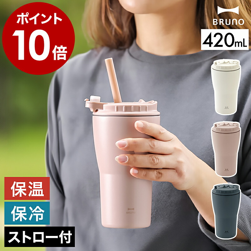特典付[ BRUNO 2WAY ストロータンブラー M ]ブルーノ 420ml 蓋付き 保温 保冷 Mサイズ ステンレス タンブラー 食洗機対応 真空断熱 bhk322 ストロー 直飲み