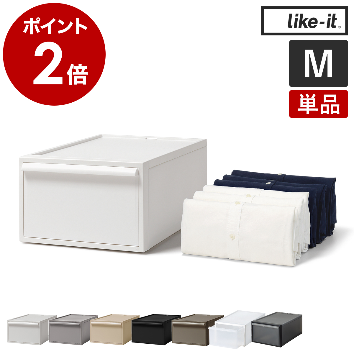 特典付[ like-it クローゼットシステム 引出し M ]Mサイズ 収納ケース 引き出し 衣装ケース ライクイット 積み重ね スタッキング 衣類収納 日本製 CS-D2