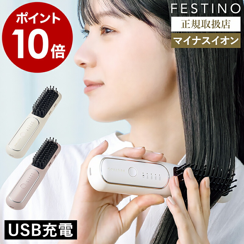 特典付[ FESTINO 充電式 スタイリング ヒーターブラシ ]ヒートブラシ フェスティノ コードレス マイナスイオン ストレート カール アイロン ミニ SMHB-049