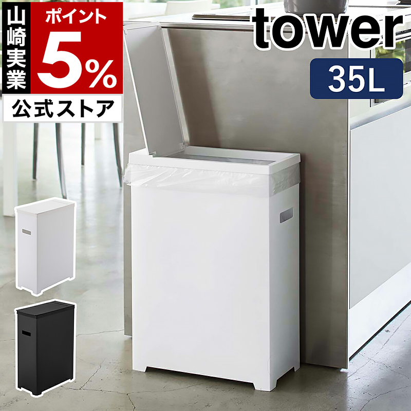 特典付 [ スリム蓋付きゴミ箱 タワー ] 山崎実業 tower ゴミ箱 45Lゴミ袋対応 35L ごみ箱 分別 ふた付き フタ くずかご 折りたたみ yamazaki 公式 5203 5204