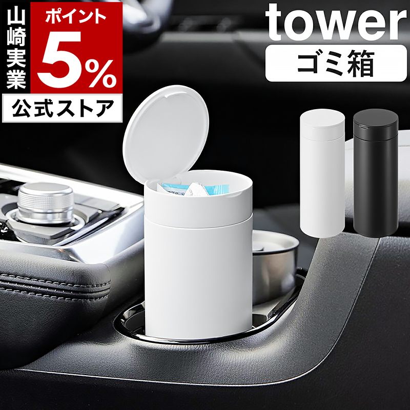 [ ボトル型蓋付きゴミ箱 タワー ]山崎実業 tower 車用 ダストボックス ドリンクホルダー ドアポケット yamazaki 公式 ブラック ホワイト 1834 1835