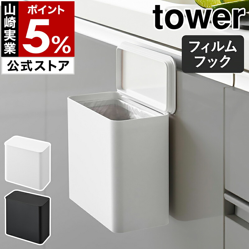 [ フィルムフック 密閉ゴミ箱 タワー ]山崎実業 tower ふた付き 浮かせて設置 壁面 パッキン 北欧 おしゃれ yamazaki 公式 ブラック ホワイト 1520 1521
