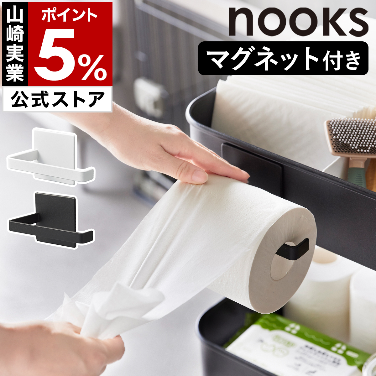 特典付[ マグネットトイレットペーパーホルダー ヌークス ] 山崎実業 nooks 穴開け不要 磁石 壁面 収納 yamazaki 公式 黒 ブラック ホワイト 2111 2112