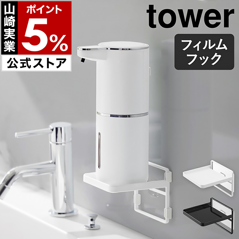 [ フィルムフック ソープディスペンサー収納トレー タワー ]山崎実業 公式 tower ディスペンサー yamazaki 白 黒 ブラック ホワイト 2181 2182