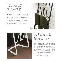 スチールフレームで構成されたシンプルな『 URBAN( アーバン )スリッパラック 』。広さが限られた場所でも省スペースに置ける、奥行き約15.5cmの薄型で、安定感があり倒れにくいようにデザインされています。内側のフレームは絶妙な角度が付いており、スリッパが出し入れしやすい仕様に。光沢を抑えたマットな質感とシックなモノトーンカラーは、自宅はもちろんオフィスにもなじみます。