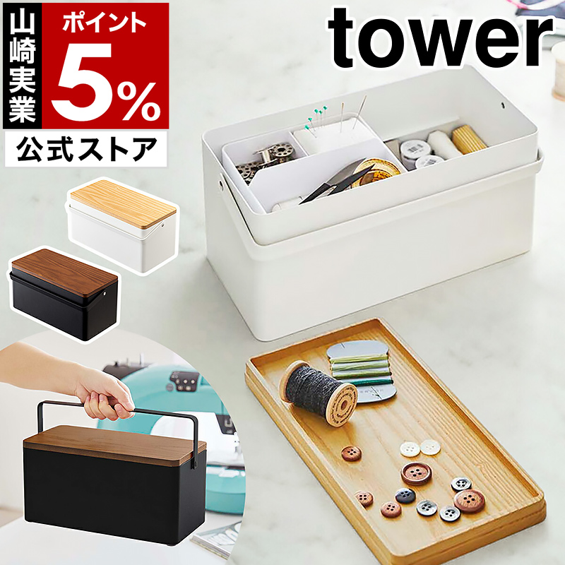 特典付[ 裁縫箱 タワー ]山崎実業 tower 裁縫道具 ソーイングボックス 裁縫セット 蓋付き 手芸 刺繍 小物入れ 針山付き お道具箱 yamazaki 公式 5060 5061