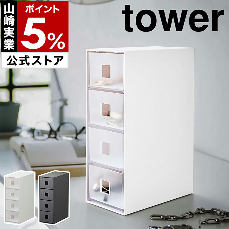 [ サングラス&小物収納ケース タワー ]山崎実業 tower 収納ケース 引き出し 4段 収納ボックス 小物入れ yamazaki 公式 ブラック ホワイト 6133 6134