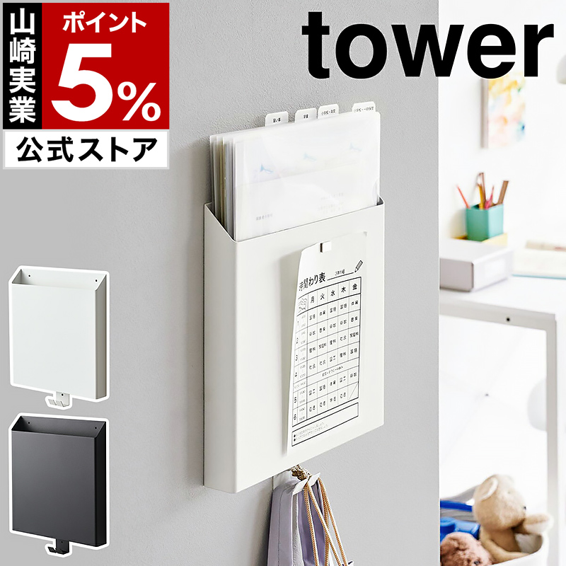 [ 石こうボード壁対応プリント収納ホルダー タワー ]山崎実業 tower レターケース プリントケース 壁面収納 yamazaki 公式 ブラック ホワイト 2020 2021