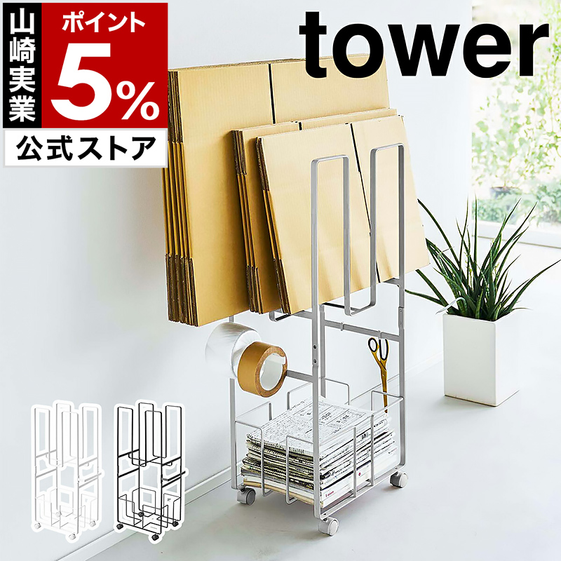 [ ダンボール&新聞ストッカー タワー ]山崎実業 tower 段ボール 保管 雑誌 キャスター付き モノトーン yamazaki 公式 ブラック ホワイト 5758 5759