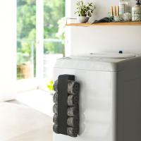 『 tower( タワー )マグネットタオルホルダー 』は丸めたタオル約5枚が入るシンプルなホルダー。洗濯機横などにマグネットで簡単に取り付けられます。デッドスペースを有効に使えるので、限られた広さのサニタリーコーナーにぴったり。キッチンタオルのストッカーとして冷蔵庫横に取り付けて使うのも◎。付属の木ネジで壁などにも設置できます。