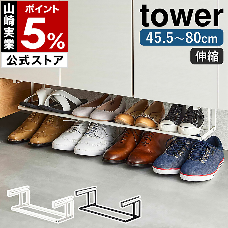[ 浮かせる伸縮シューズラック タワー ]山崎実業 tower 玄関 靴収納 狭い 伸縮 下駄箱下 靴箱下 スリム 引っ掛け式 吊り下げ yamazaki 公式 5631 5632