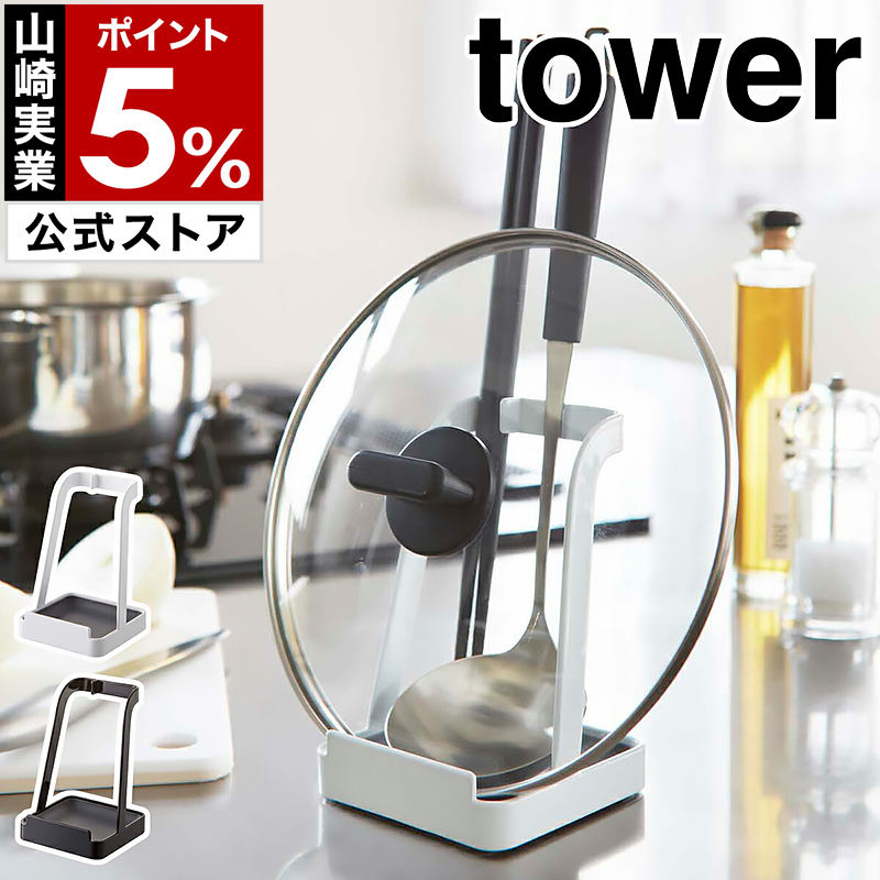 特典付[ お玉&鍋ふたスタンド タワー ]山崎実業 tower 鍋ふた お玉 立て レシピ 置き スタンド 菜箸 シンプル yamazaki 公式 ブラック ホワイト 2248 2249